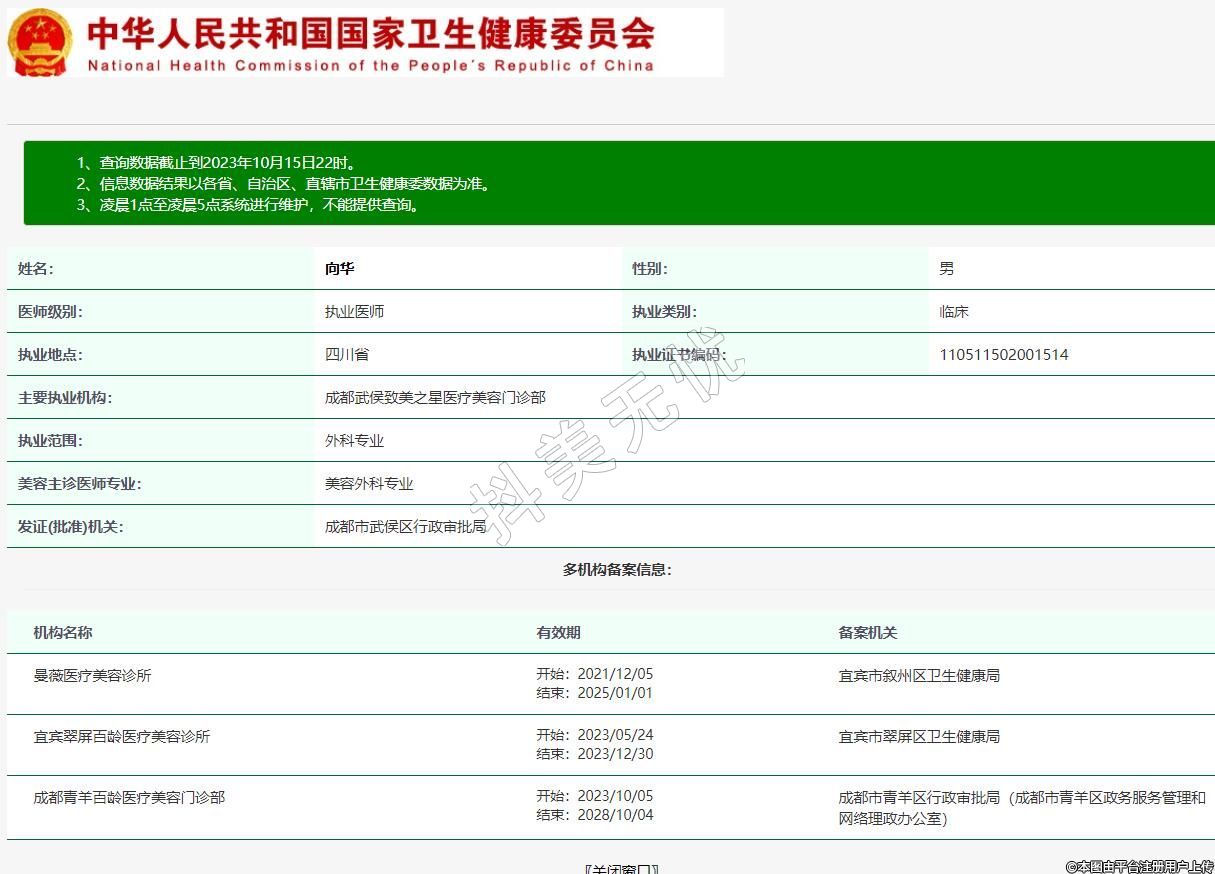 主要執(zhí)業(yè)機(jī)構(gòu):成都武侯致美之星醫(yī)療美容門診部