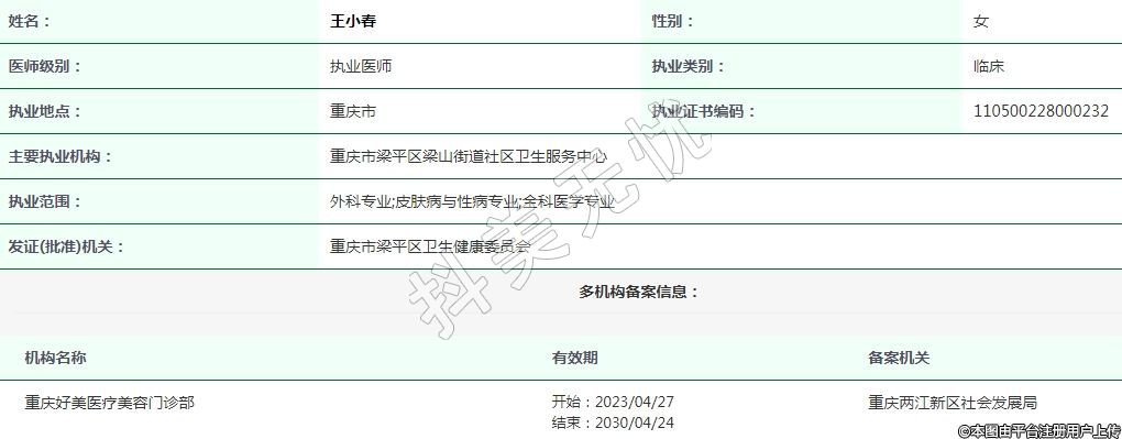 重慶好美醫(yī)療美容執(zhí)業(yè)醫(yī)師 -