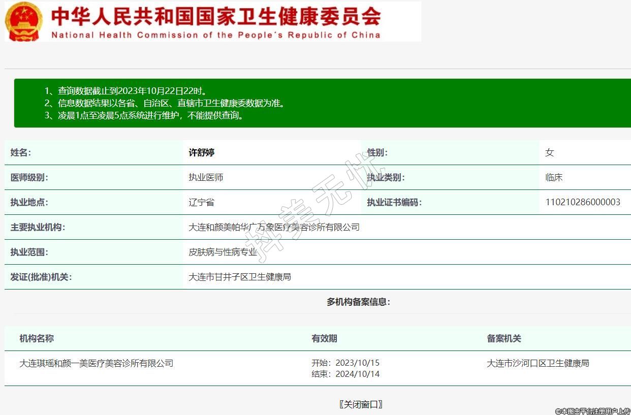 主要執(zhí)業(yè)機構:大連和顏美帕華廣萬象醫(yī)療美容診所有限公司