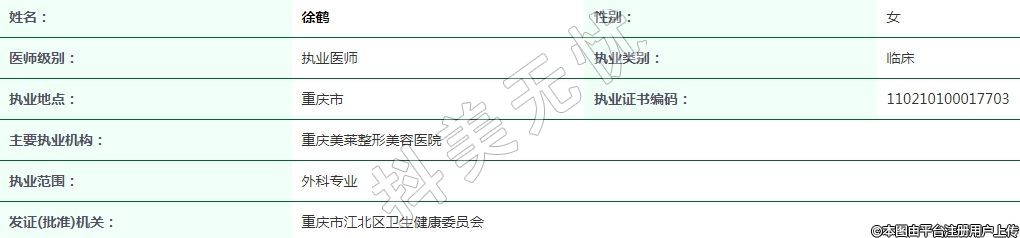 主要執(zhí)業(yè)機(jī)構(gòu):重慶美萊整形美容醫(yī)院