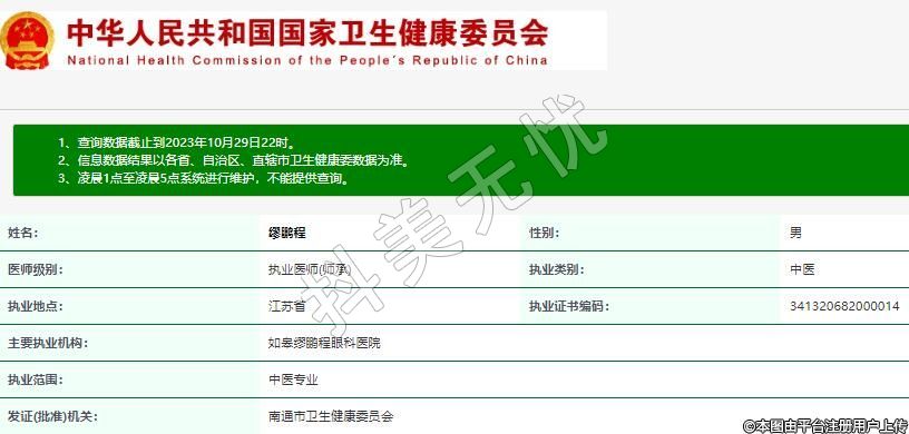 主要執(zhí)業(yè)機(jī)構(gòu):如皋繆鵬程眼科醫(yī)院