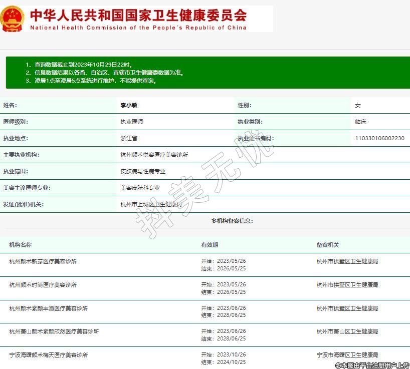 主要執(zhí)業(yè)機構(gòu):杭州顏術(shù)悅?cè)葆t(yī)療美容診所
