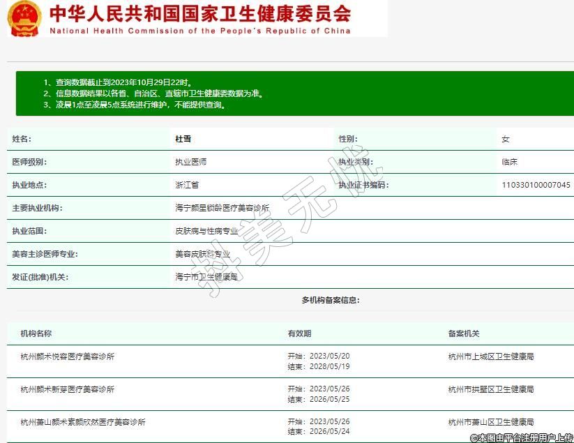 主要執(zhí)業(yè)機(jī)構(gòu):海寧顏星鎖齡醫(yī)療美容診所