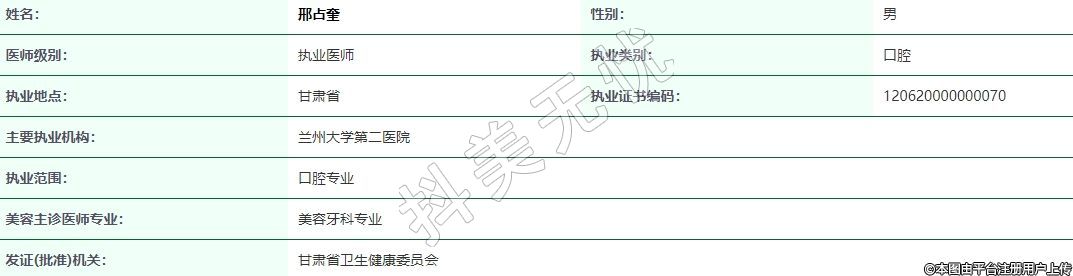 執(zhí)業(yè)范圍:口腔專業(yè)