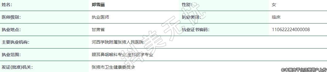 執(zhí)業(yè)范圍:眼耳鼻咽喉科專業(yè);全科醫(yī)學(xué)專業(yè)