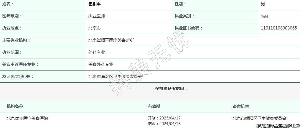 北京崔相平醫(yī)療美容作業(yè)醫(yī)生