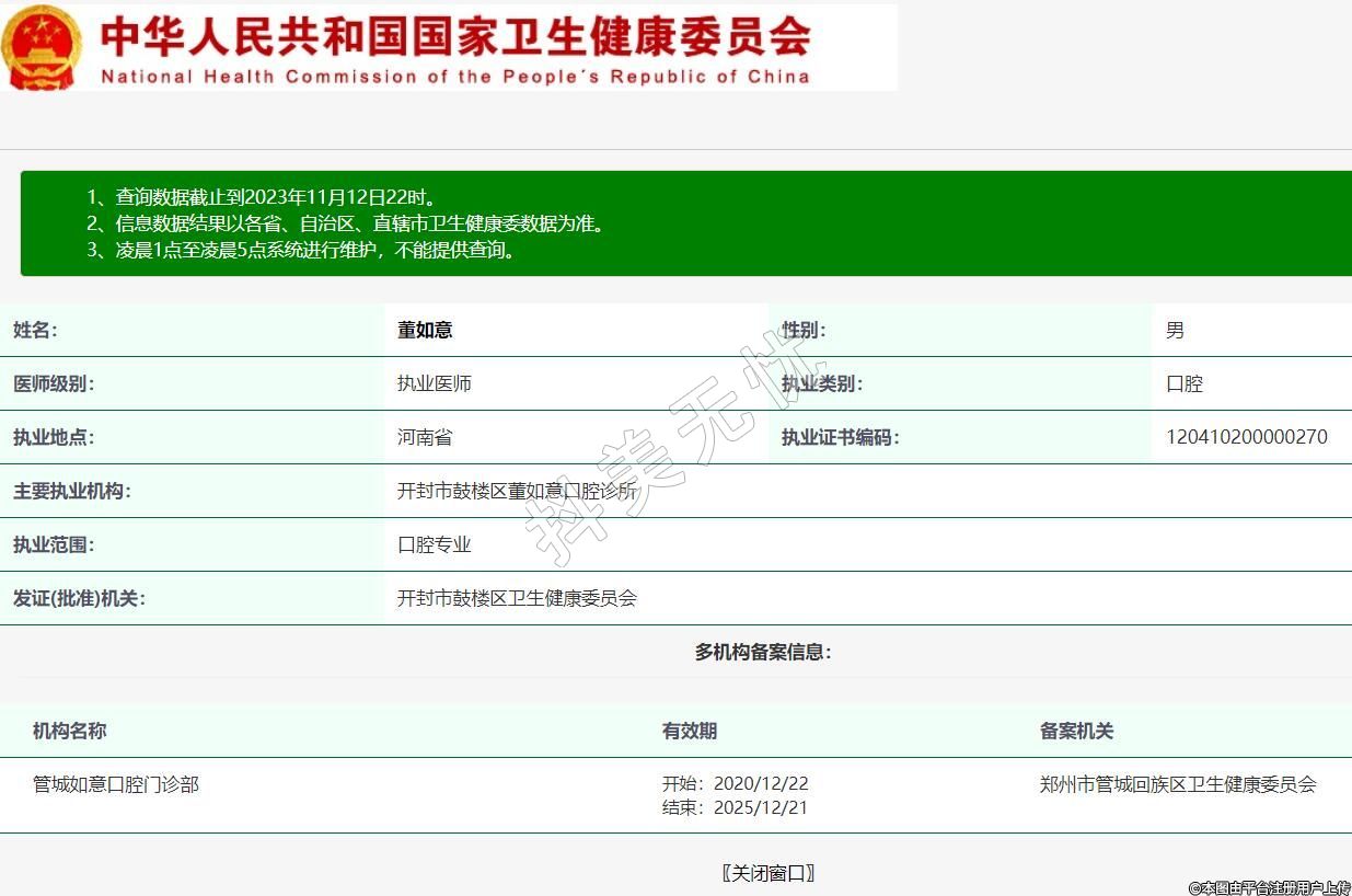 主要執(zhí)業(yè)機(jī)構(gòu):開(kāi)封市鼓樓區(qū)董如意口腔診所