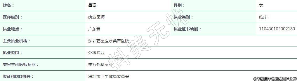 主要執(zhí)業(yè)機構:深圳藝星醫(yī)療美容醫(yī)院