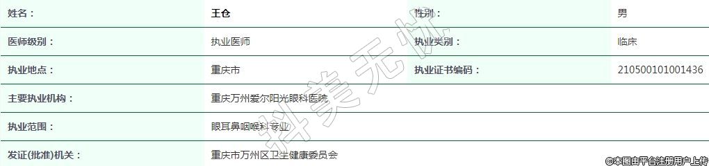 重慶萬州愛爾陽光眼科執(zhí)業(yè)醫(yī)師