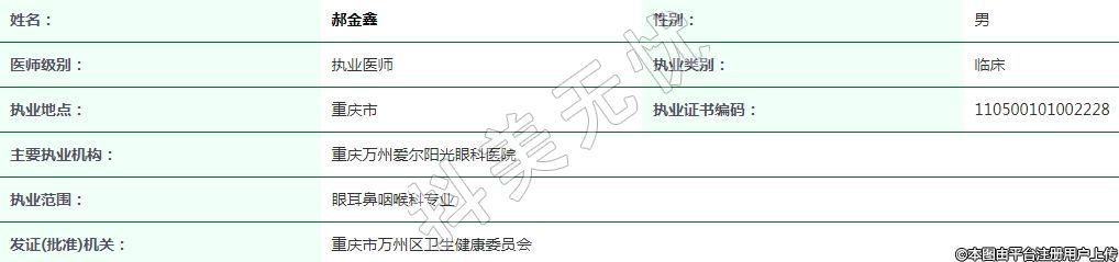 重慶萬州愛爾陽光眼科執(zhí)業(yè)醫(yī)師