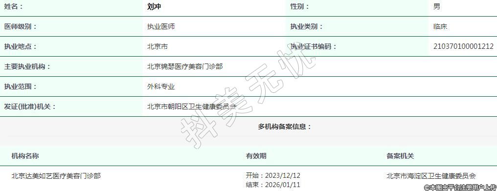 北京達(dá)美如藝醫(yī)療美容執(zhí)業(yè)醫(yī)生