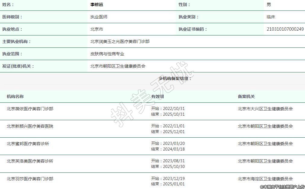 主要執(zhí)業(yè)機(jī)構(gòu):北京潤美玉之光醫(yī)療美容門診部