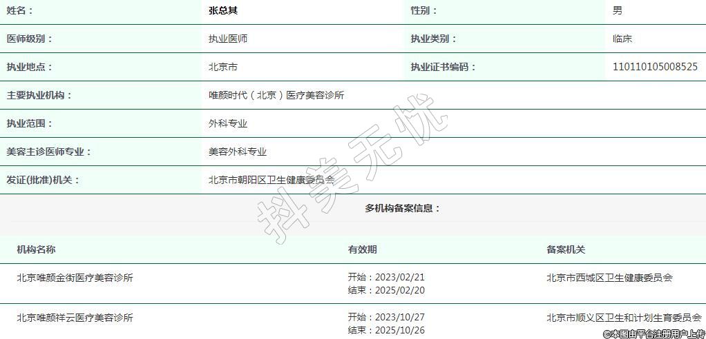 北京唯顏時(shí)代醫(yī)療美容執(zhí)業(yè)醫(yī)生