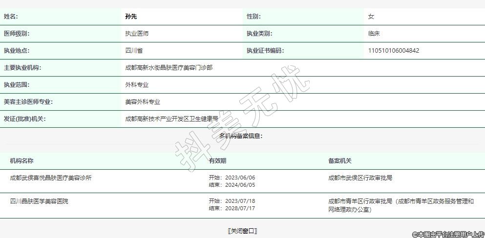主要執(zhí)業(yè)機(jī)構(gòu):成都高新水街晶膚醫(yī)療美容門(mén)診部