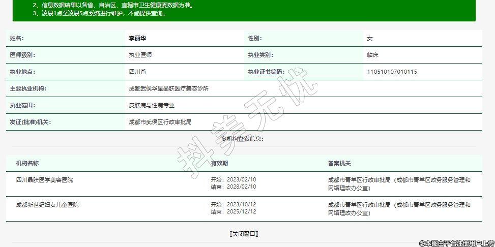 主要執(zhí)業(yè)機(jī)構(gòu):成都武侯華星晶膚醫(yī)療美容診所