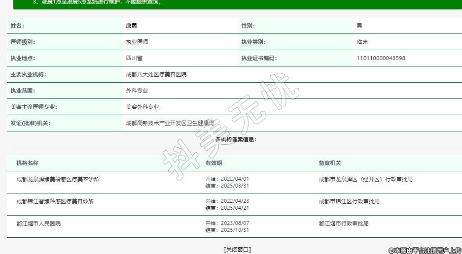 主要執(zhí)業(yè)機構:成都八大處醫(yī)療美容醫(yī)院