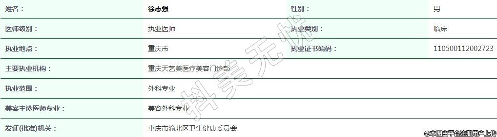 重慶天藝美醫(yī)療美容執(zhí)業(yè)醫(yī)師