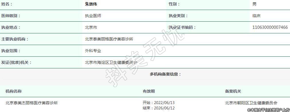主要執(zhí)業(yè)機(jī)構(gòu):北京泰美麗格醫(yī)療美容診所