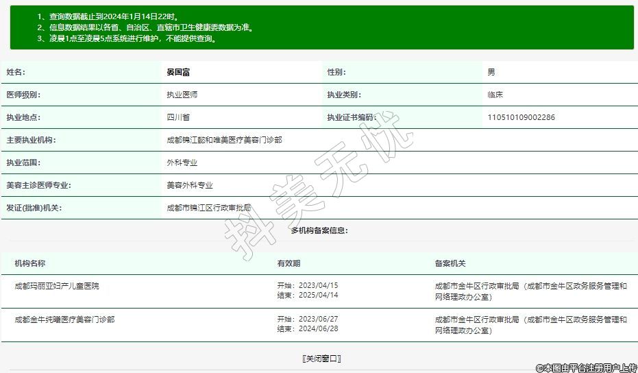 主要執(zhí)業(yè)機(jī)構(gòu):成都錦江懿和唯美醫(yī)療美容門診部