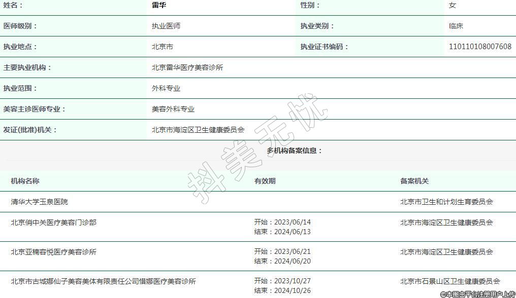 主要執(zhí)業(yè)機構:北京雷華醫(yī)療美容診所