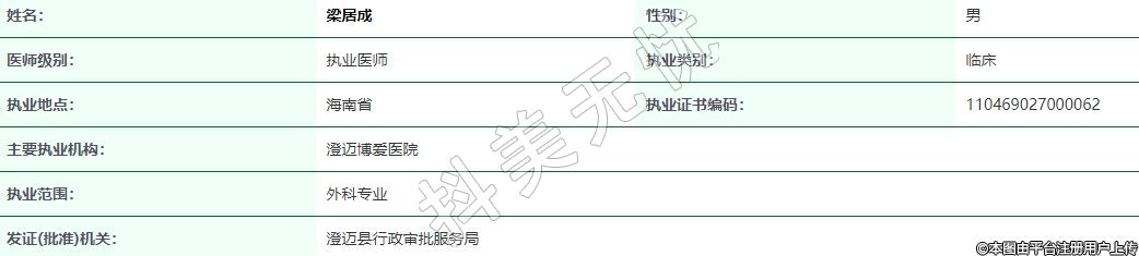 主要執(zhí)業(yè)機(jī)構(gòu):澄邁博愛醫(yī)院