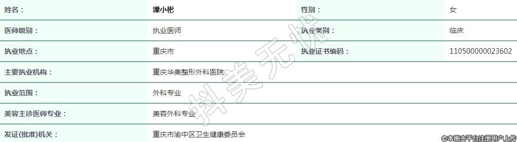 重慶華美整形外科執(zhí)業(yè)醫(yī)師