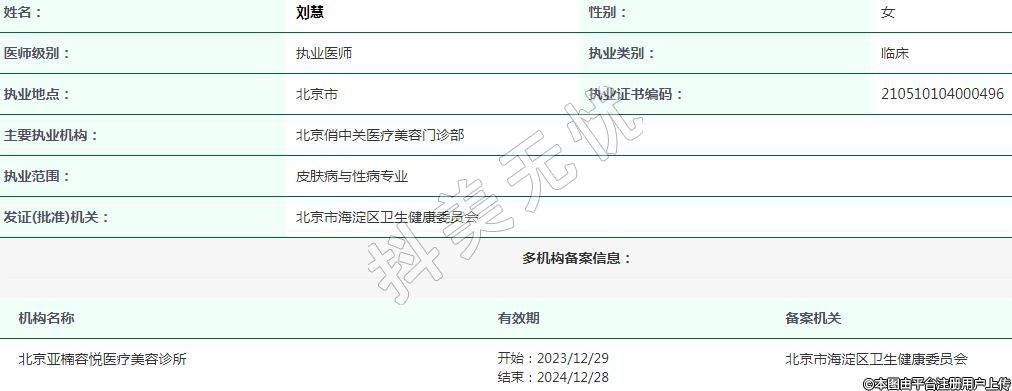 主要執(zhí)業(yè)機構(gòu):北京俏中關(guān)醫(yī)療美容門診部