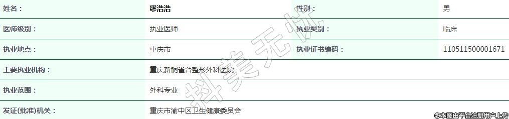 重慶新銅雀臺整形外科執(zhí)業(yè)醫(yī)師
