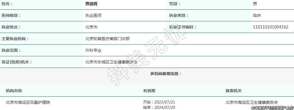 主要執(zhí)業(yè)機構(gòu):北京知音醫(yī)療美容門診部