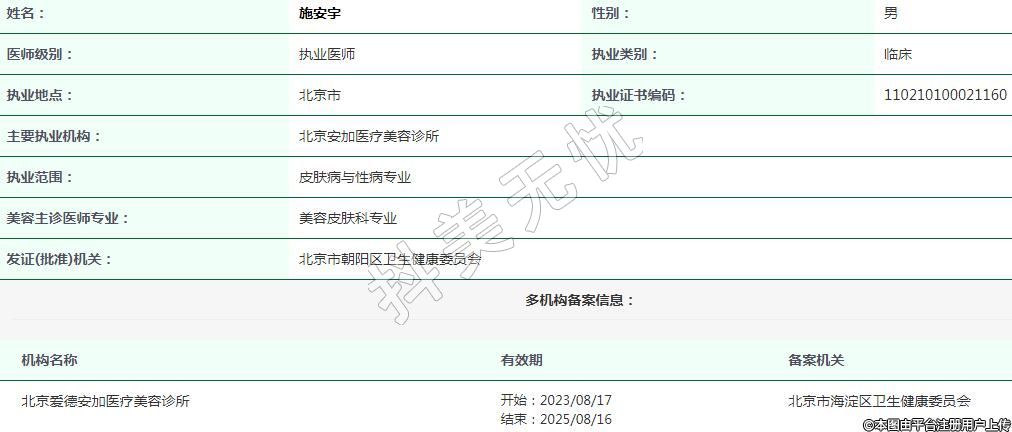 北京安加醫(yī)療美容執(zhí)業(yè)醫(yī)生