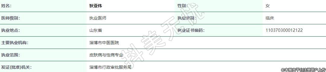 執(zhí)業(yè)范圍:皮膚病與性病專業(yè)