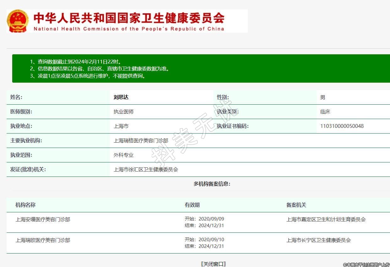 發(fā)證(批準)機關:上海市徐匯區(qū)衛(wèi)生健康委員會