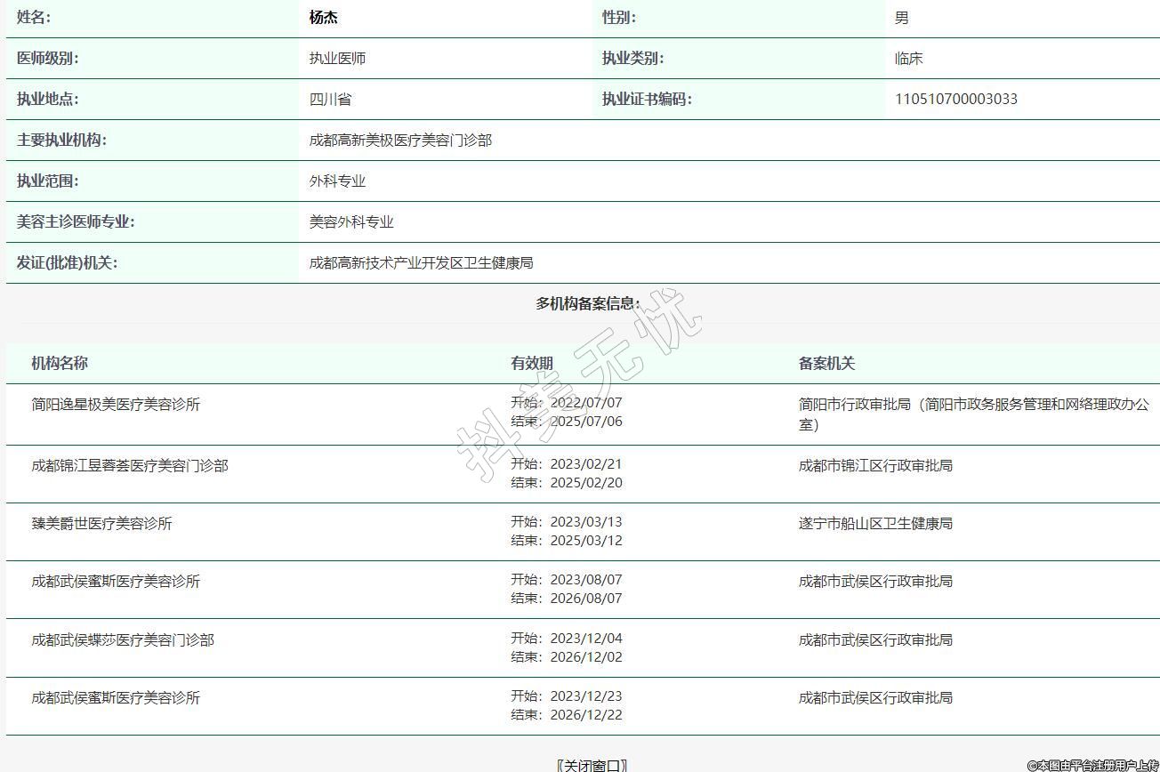 主要執(zhí)業(yè)機(jī)構(gòu):成都高新美極醫(yī)療美容門診部