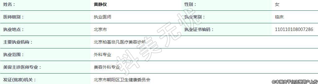主要執(zhí)業(yè)機構(gòu):北京柏薈非凡醫(yī)療美容診所