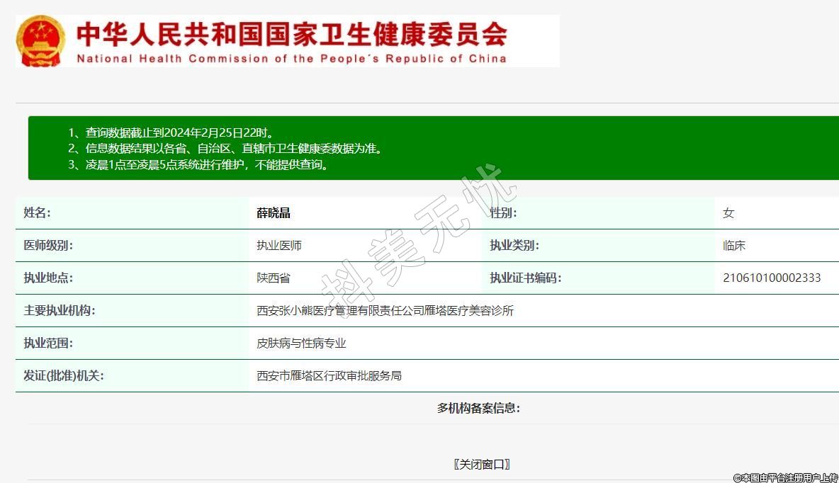 主要執(zhí)業(yè)機構:西安張小熊醫(yī)療管理有限責任公司雁塔醫(yī)療美容診所