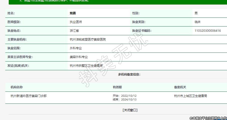 主要執(zhí)業(yè)機構(gòu):杭州潔銘威塑醫(yī)療美容醫(yī)院
