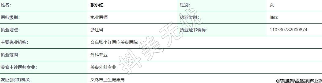 主要執(zhí)業(yè)機構:義烏張小紅醫(yī)療美容醫(yī)院