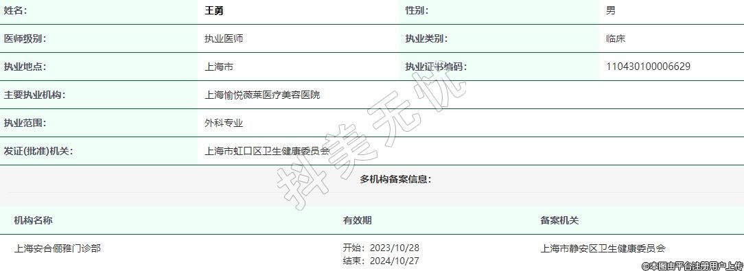 主要執(zhí)業(yè)機(jī)構(gòu):上海愉悅薇萊醫(yī)療美容醫(yī)院