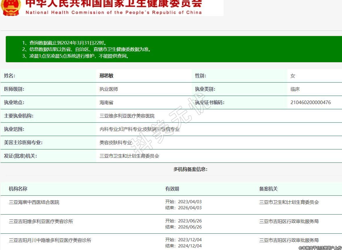 主要執(zhí)業(yè)機構(gòu):三亞維多利亞醫(yī)療美容醫(yī)院