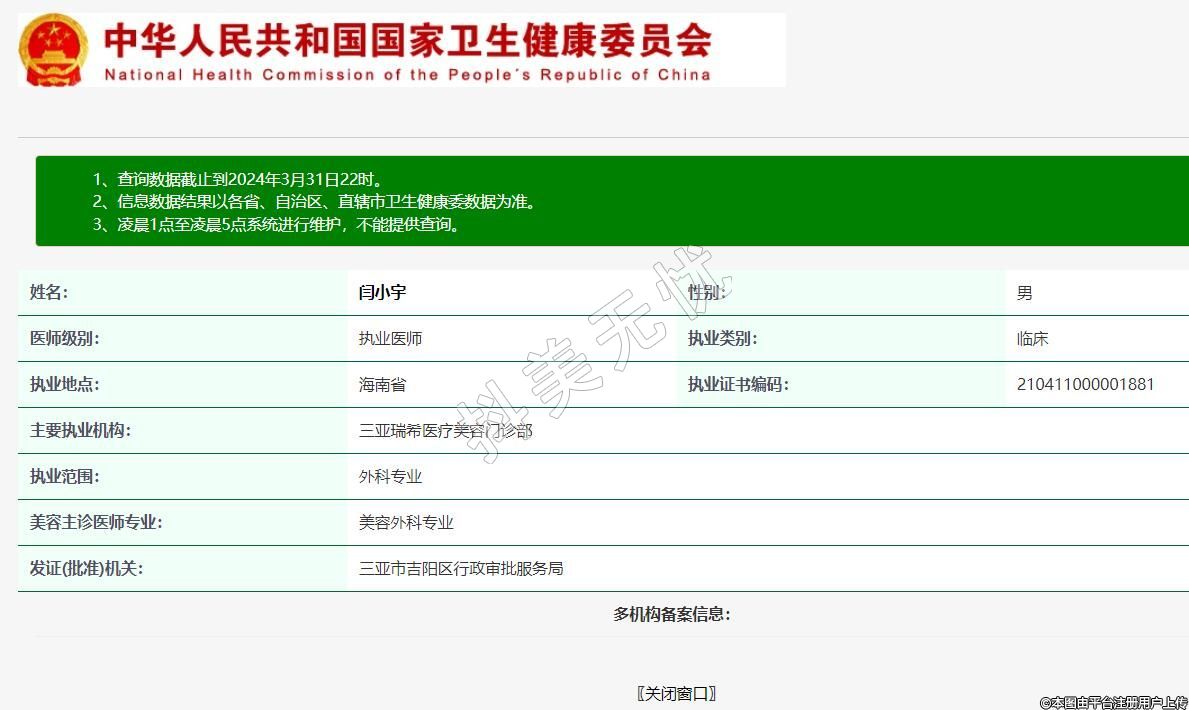 主要執(zhí)業(yè)機構:三亞瑞希醫(yī)療美容門診部