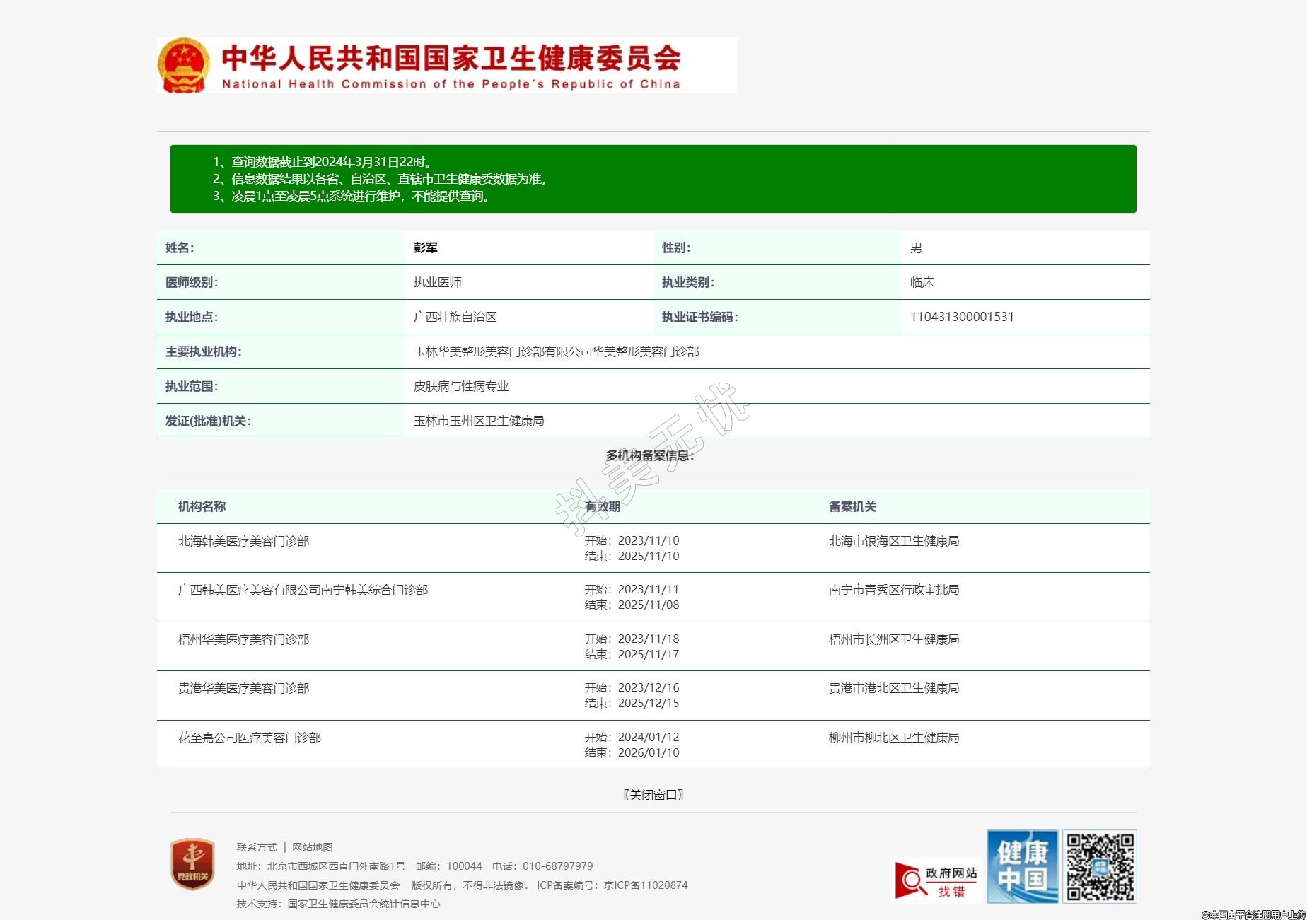 主要執(zhí)業(yè)機構:玉林華美整形美容門診部有限公司華美整形美容門診部