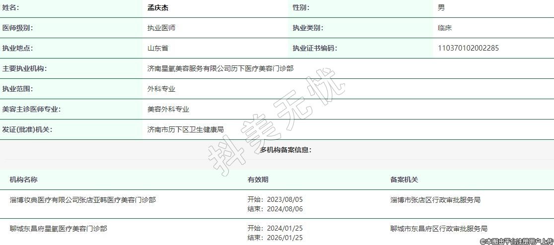 主要執(zhí)業(yè)機(jī)構(gòu):濟(jì)南星氧美容服務(wù)有限公司歷下醫(yī)療美容門診部