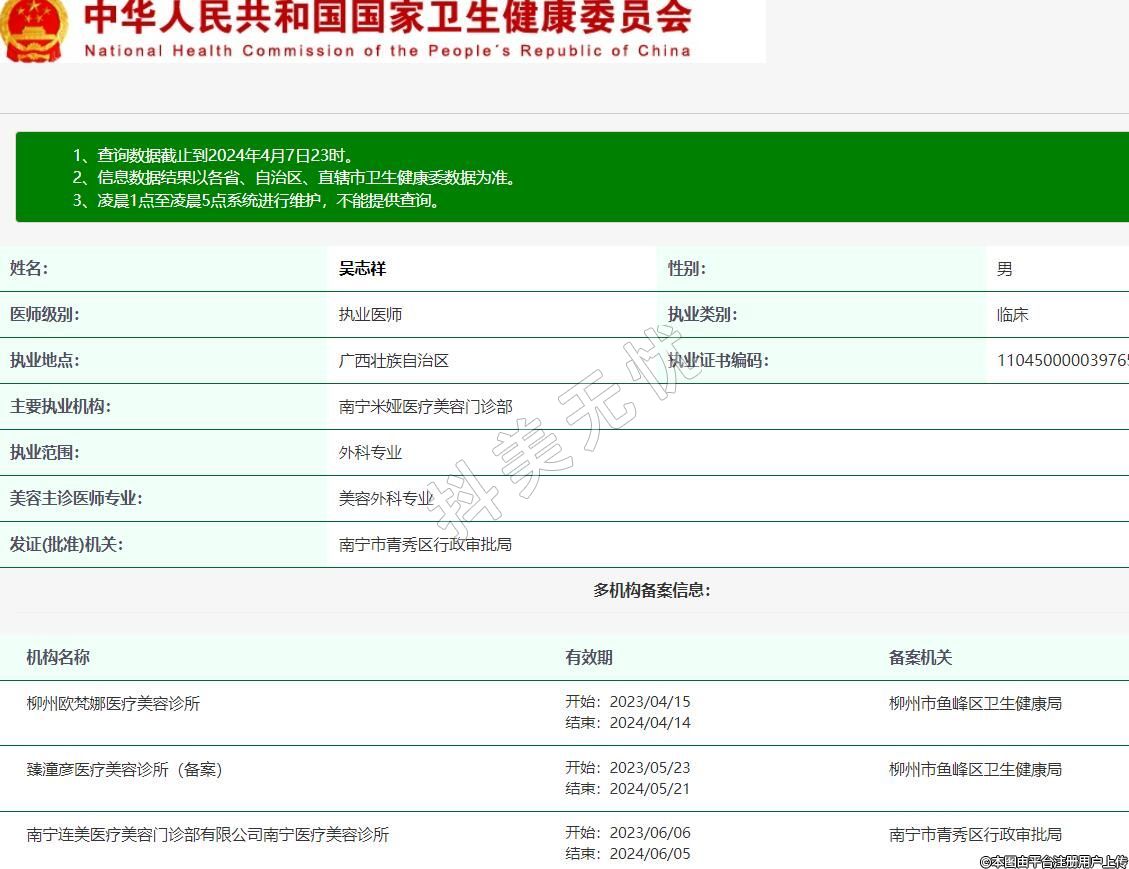 主要執(zhí)業(yè)機(jī)構(gòu):南寧米婭醫(yī)療美容門診部