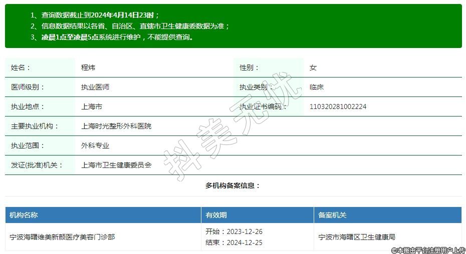 寧波海曙維美新顏醫(yī)療美容執(zhí)業(yè)醫(yī)師 -