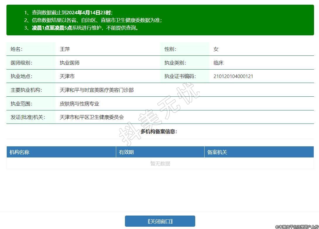 主要執(zhí)業(yè)機(jī)構(gòu):天津和平與時(shí)宜美醫(yī)療美容門診部