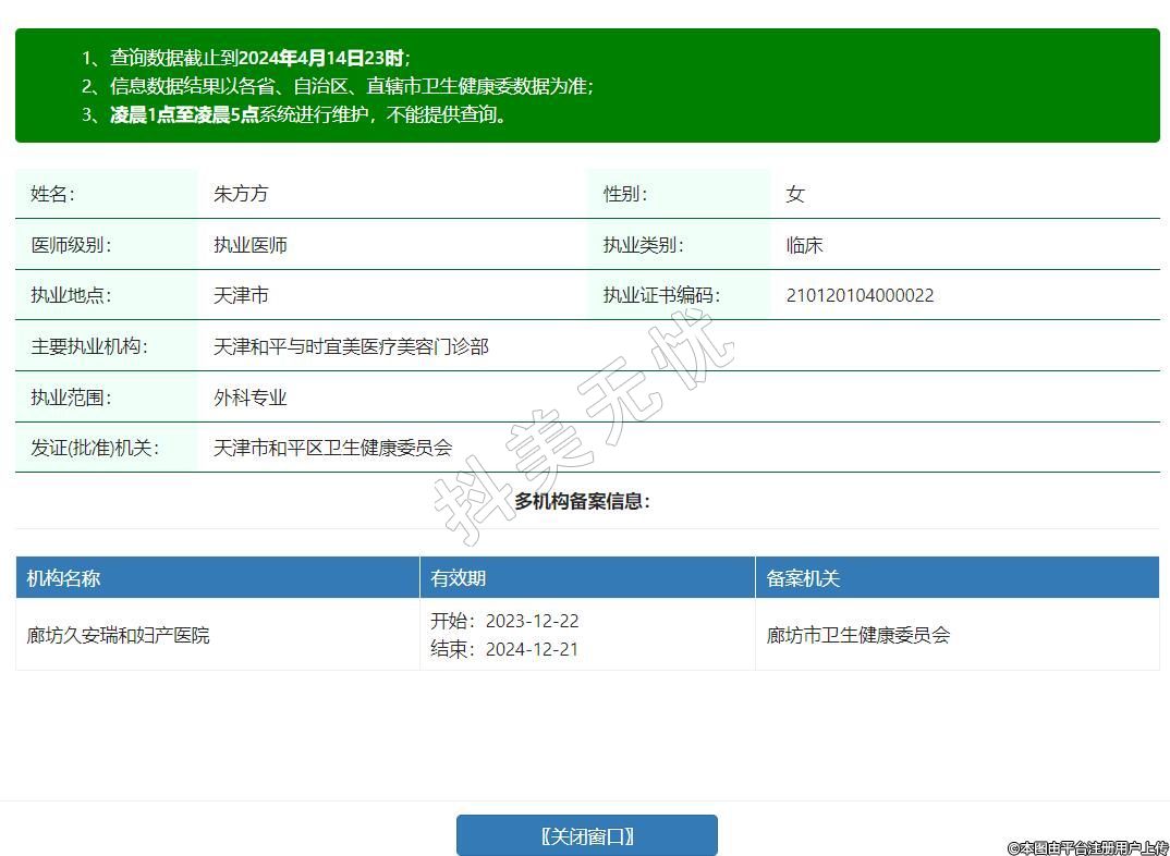 主要執(zhí)業(yè)機構:天津和平與時宜美醫(yī)療美容門診部