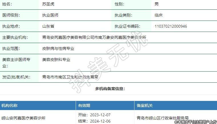 主要執(zhí)業(yè)機構(gòu):青島安芮嘉醫(yī)療美容有限公司市南萬象安芮嘉醫(yī)療美容診所