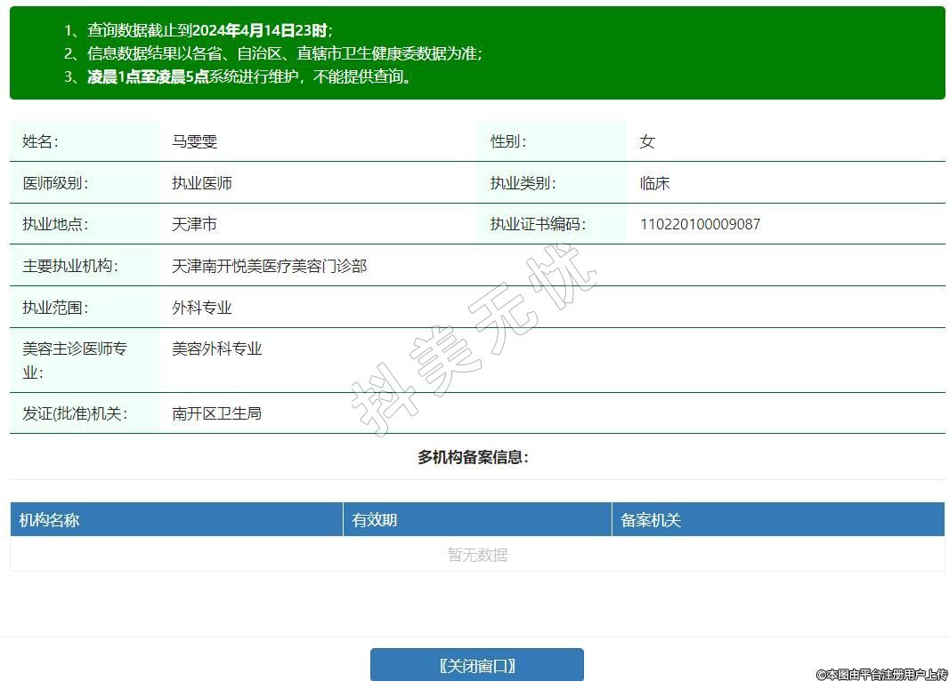 主要執(zhí)業(yè)機構:天津南開悅美醫(yī)療美容門診部