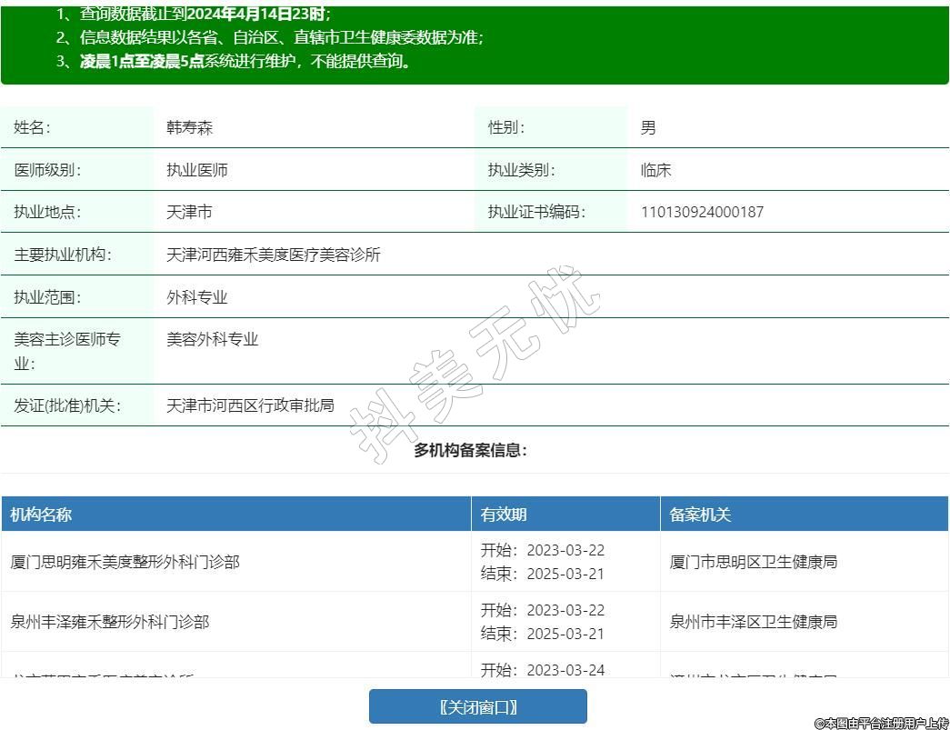 主要執(zhí)業(yè)機(jī)構(gòu):天津河西雍禾美度醫(yī)療美容診所