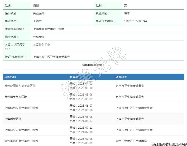 上海美萊醫(yī)療美容執(zhí)業(yè)醫(yī)師